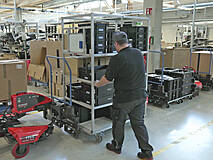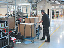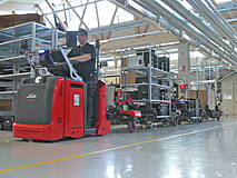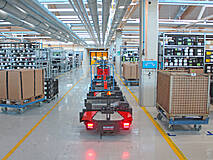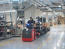 Früher hat die elobau GmbH & Co. KG die Produktion mit Hand oder zum Teil mit Staplern versorgt. Aufgrund der Situation mit neuen Gebäuden kamen auch neue Herausforderungen an die interne Logistik. Eine Nutzwertanalyse hat dann ergeben, dass ein Routenzug die ideale Ergänzung zu dem bestehenden Konzept ist.