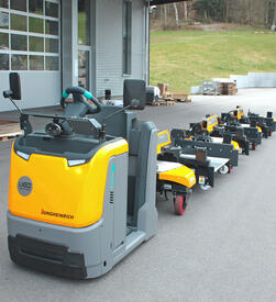 For our customer Hauff-Technik, Europe's most important manufacturer of cable, pipe and line bushings, standstill is out of the question. A load train solution consisting of a Jungheinrich EZS 350 lithium-ion tractor together with the IT510 Industry Train load train with three EF2 load carriers ensures maximum productivity and lean processes there.