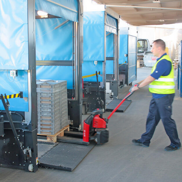 As the Factory Train is mainly used outdoors, the load train is equipped with a windproof and watertight weather protection system that automatically opens and closes when the lifting unit is operated. As an additional feature, the interior lighting of the load carrier automatically switches on when the weather protection system is open.